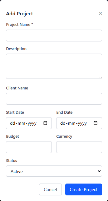 Starter Plan: Limited to 5 active projects. The “Add Project” button will be disabled if the limit is reached.